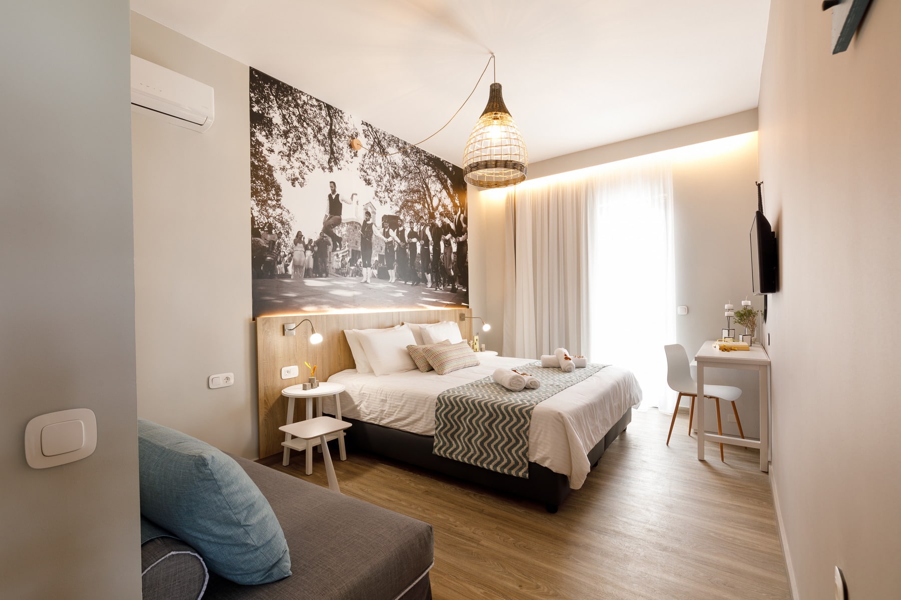 The hotel has 20 double rooms, 4 deluxe rooms and one apartment. Each has air conditioning, wifi, safety deposit box, satellite TV, mini fridge, hair dryer. All rooms have balconies.