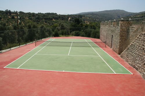 Outside there is a sun terrace and a swimming pool with children pool, sun beds and umbrellas and a tennis court. The garden provides a beautiful area for dining and generally relaxing in stunning surroundings.