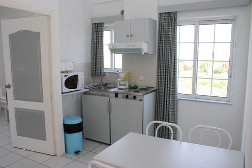 Facilities include a swimming pool (90sqm) with children’s end, pool bar, a beautiful stone tiled barbecue area, breakfast room (breakfast is not included), modern reception area and a small pleasantly decorated lounge with TV. Most of the apartments offer sea views and all of the apartments are supplied with air conditioning (extra local charge), microwave, radio, telephone, TV, electric kettle and toaster. Provision has been made in two of the ground floor studios, for clients with wheelchairs.