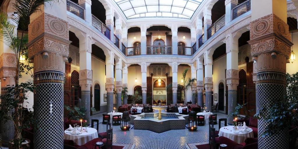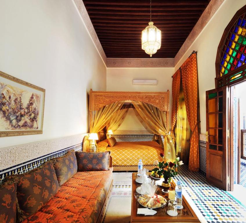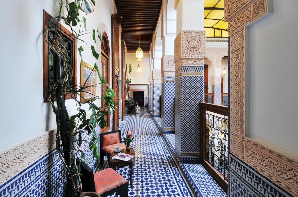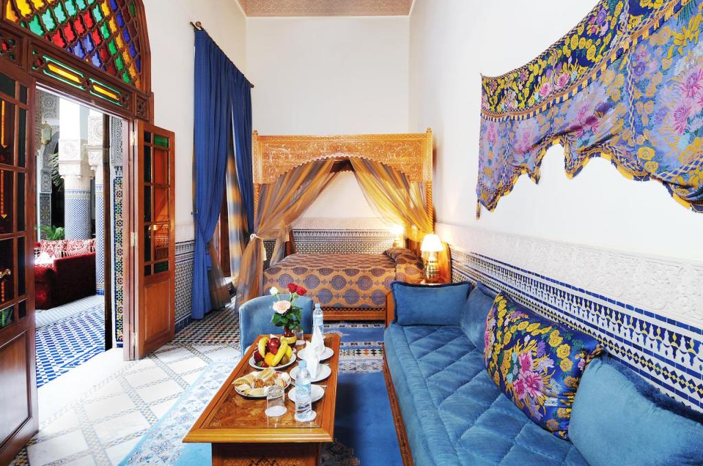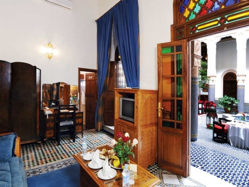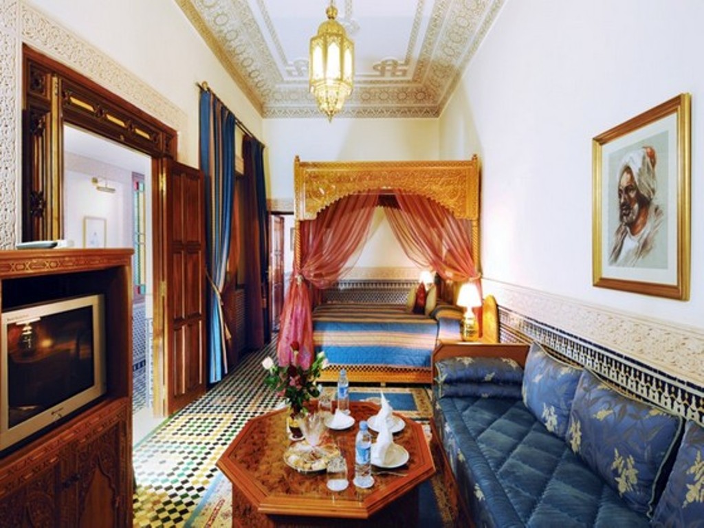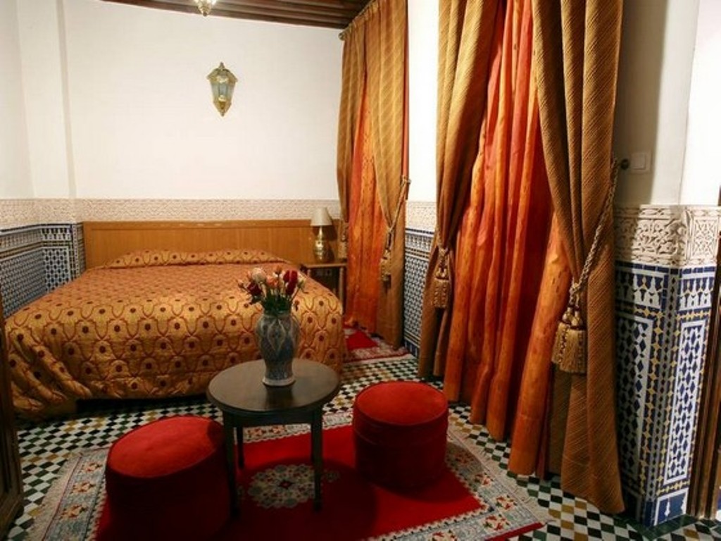 Inspired by Andalousian architects and craftsman, this riad opened its doors in 2006. The Riad Myra is located in the heart of the historic Medina just a short walk from the Batha Museum. This beautiful house has been restored to the highest standards and is one of the most traditional properties in Fez . The large central courtyard is surrounded by archways with ornate stucco; traditional blue and white mosaics and intricately carved cedar wood doors.