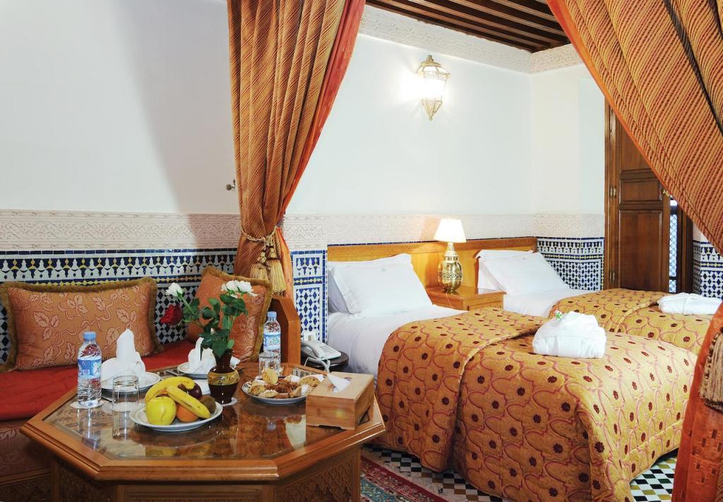 A couple of the Comfort rooms can be configured as twins and several of the Comfort rooms have a small living room. Standard rooms are upstairs with views of the patio and the riad interior. They each have two single beds which can be converted into a king size bed. One of the standard rooms has a connecting door to one of the suites, so this would be ideal for families.