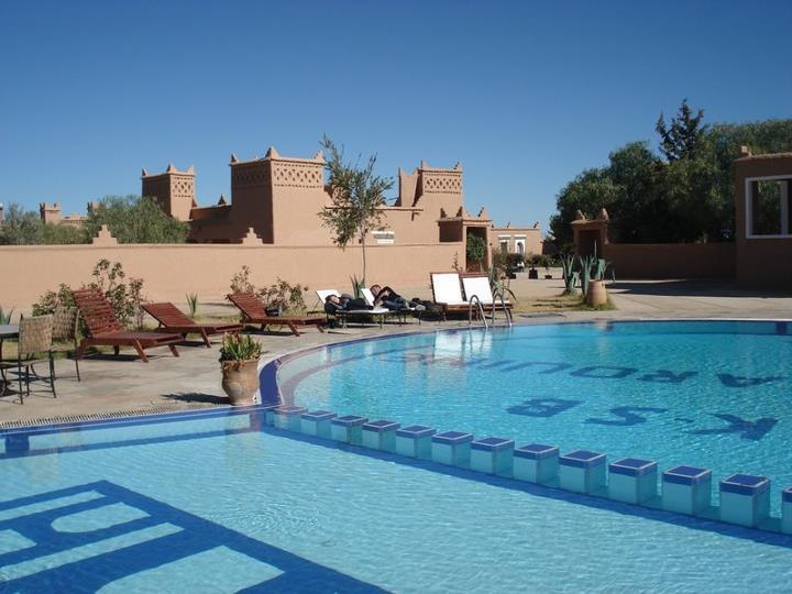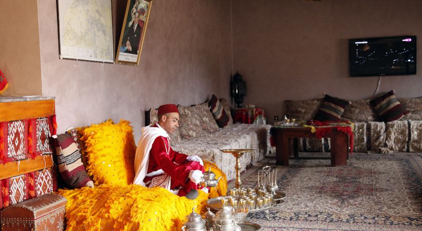 Full reception service, restaurant serving quality local cuisine - half board can be lunch or dinner (please specify each day). Swimming pool, local guides for walking trips in Dades Valley. A continental breakfast with fresh bread is served each morning by the pool, or in the dining room. For other meals, guests are invited to sample traditional Moroccan dishes on the terrace. Other relaxation activities offered at the hotel include hammam and massage treatments. Guests can also relax on the sunloungers by the pool, or relax in the living room equipped with TV and free wifi access.