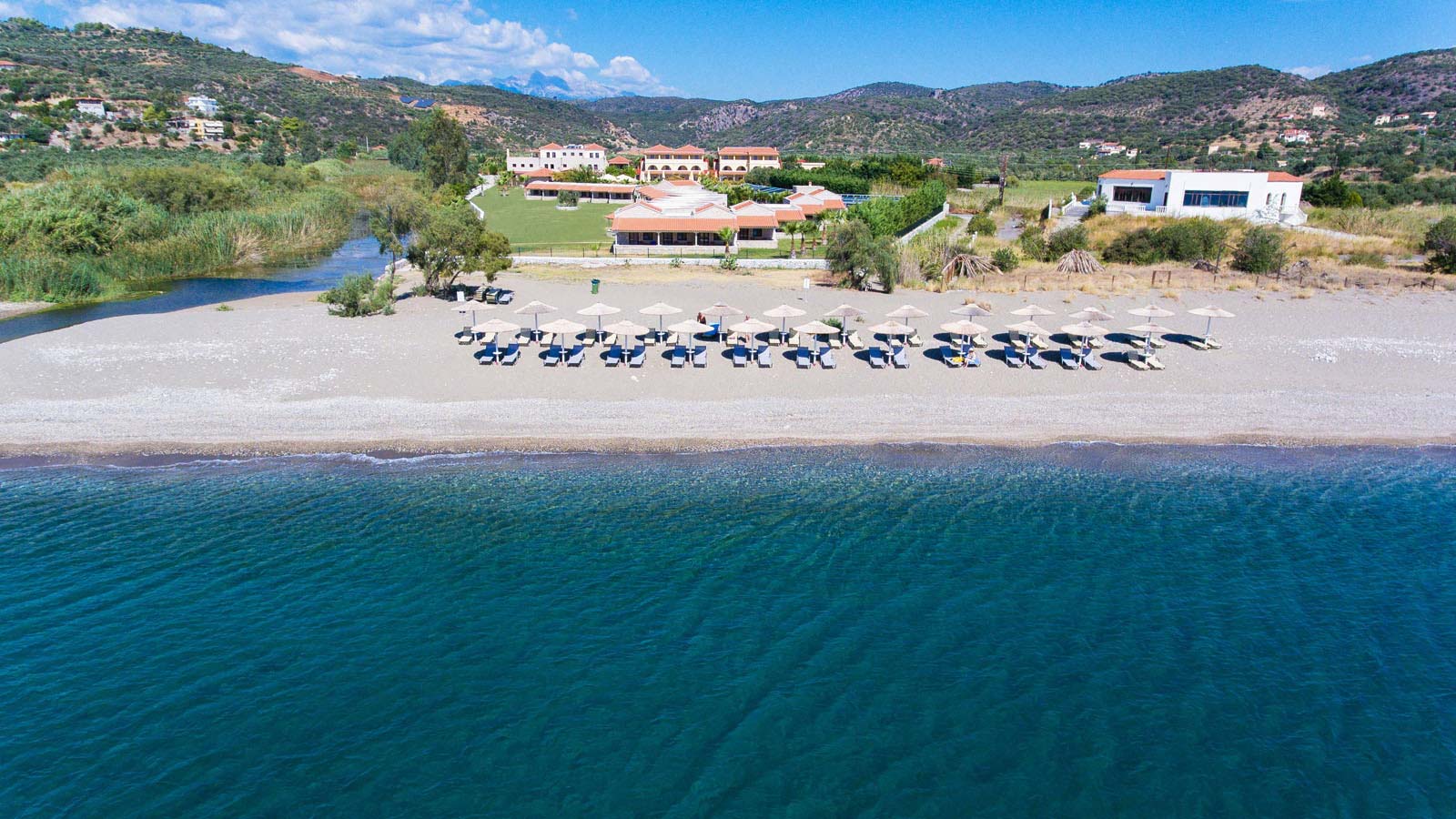 A few metres from the sandy beach with views of Mount Taygetos, Gythio and the Gulf of Laconia.