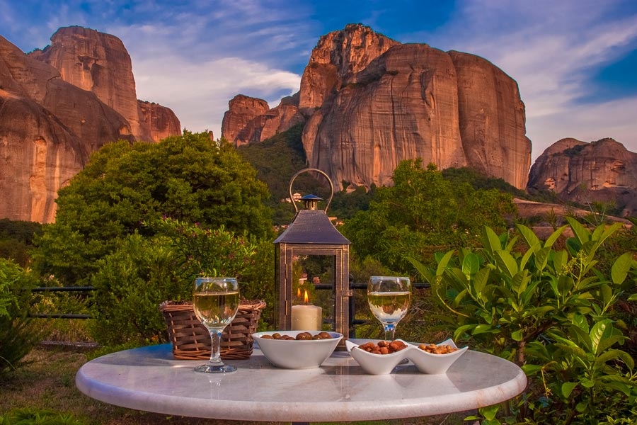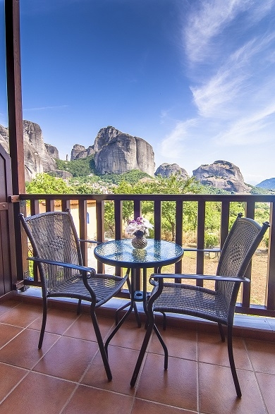 All 24 rooms are spacious and offer a magnificent views to the mountains and the Meteora rocks. They all have air conditioning, heating, wifi, satellite TV, safe, mini bar (fridge), telephone, hairdryer, telephone, and balconies with panoramic views.