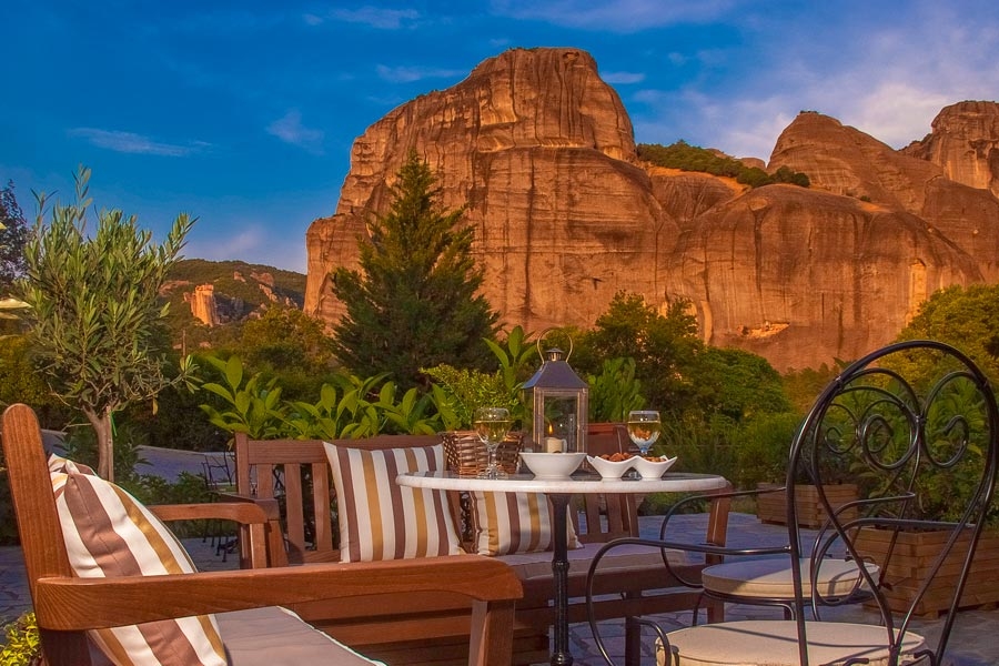 Using original materials of wood and stone this small and friendly hotel enjoys a panoramic view of the area and is often called the 'balcony of Meteora'.