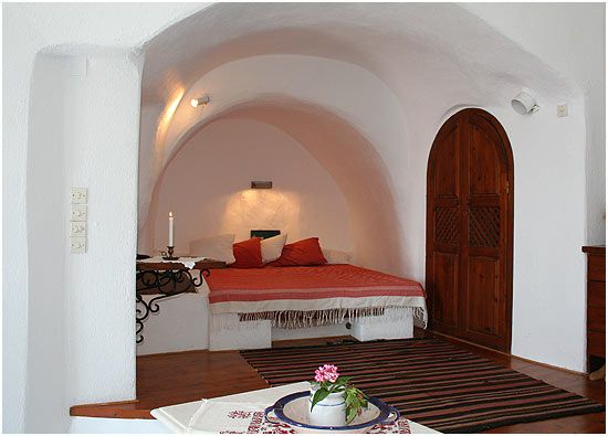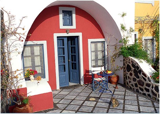 There are 6 houses, each accommodating 2-4 persons. Each house has a bedroom, living area, equipped kitchenette, mini bar, bathroom, direct telephone and a southeast open-air terrace overlooking the caldera, the volcano and the Aegean sea.