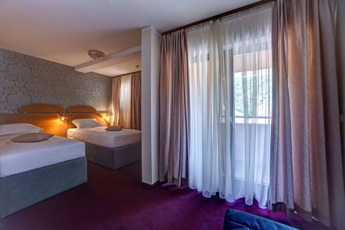 The hotel has double, triple and single occupancy rooms & suites, all rooms are en-suite and equipped with air conditioning (heating and cooling), mini bar, satellite tv, wi-fi telephone. The hotel offers accommodation with breakfast, half-board and full-board, and organizes lunches and dinner for groups.