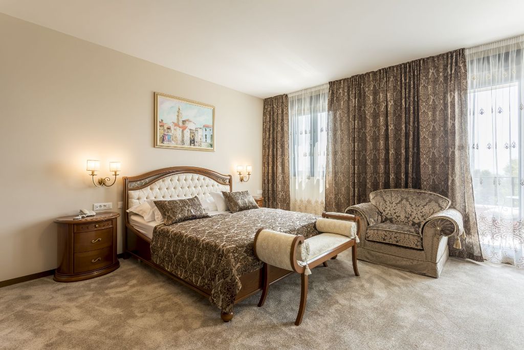 • Deluxe rooms - largest and most comfortable rooms for two persons in the hotel making it a great choice if you wish to treat yourself (also possible to upgrade to balcony with a sea view). The room is equipped with air conditioning, minibar, safety deposit box, flat screen TV, radio and telephone.