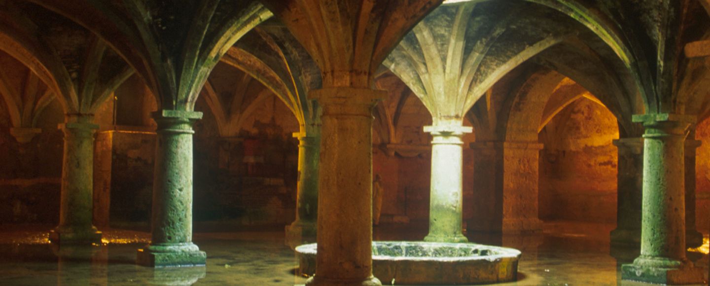 A series of underground chambers, known as the cistern, were originally built in 1514 by the Portuguese and may have been used as an arsenal or as a store before being transformed into a cistern to be used during sieges. Its Gothic architecture represents a square room of 1100m² supported by five rows of columns and a vaulted ceiling. In the centre, a shaft of light has been opened up. It was rediscovered by accident in 1916 by a shopkeeper who wanted to enlarge his premises. This room has served as the set for many films, including the famous Othello by Orson Welles.