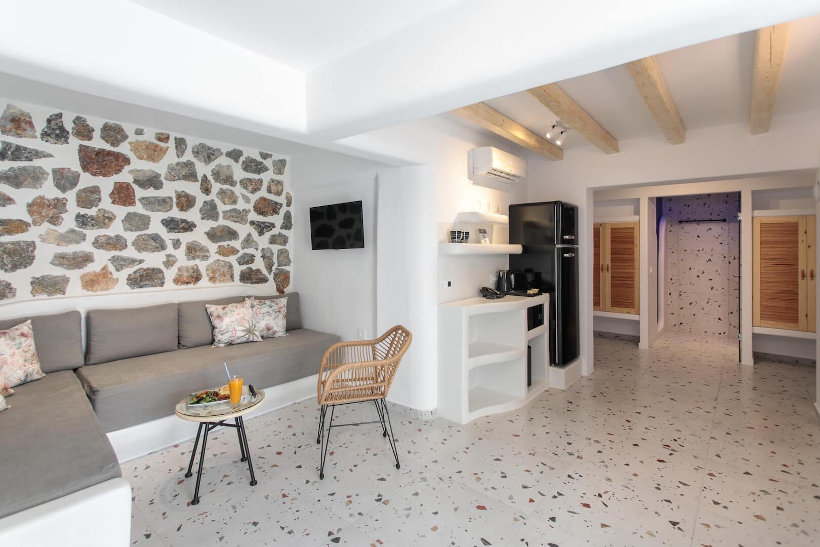 • Deluxe Suite with Private Outdoor Jacuzzi and Sea View (40sqm) can sleep 4 people -  king size double bed, while the second room has 2 large sofa beds and can also be used as a living room, private hot tub on the balcony, sea view.