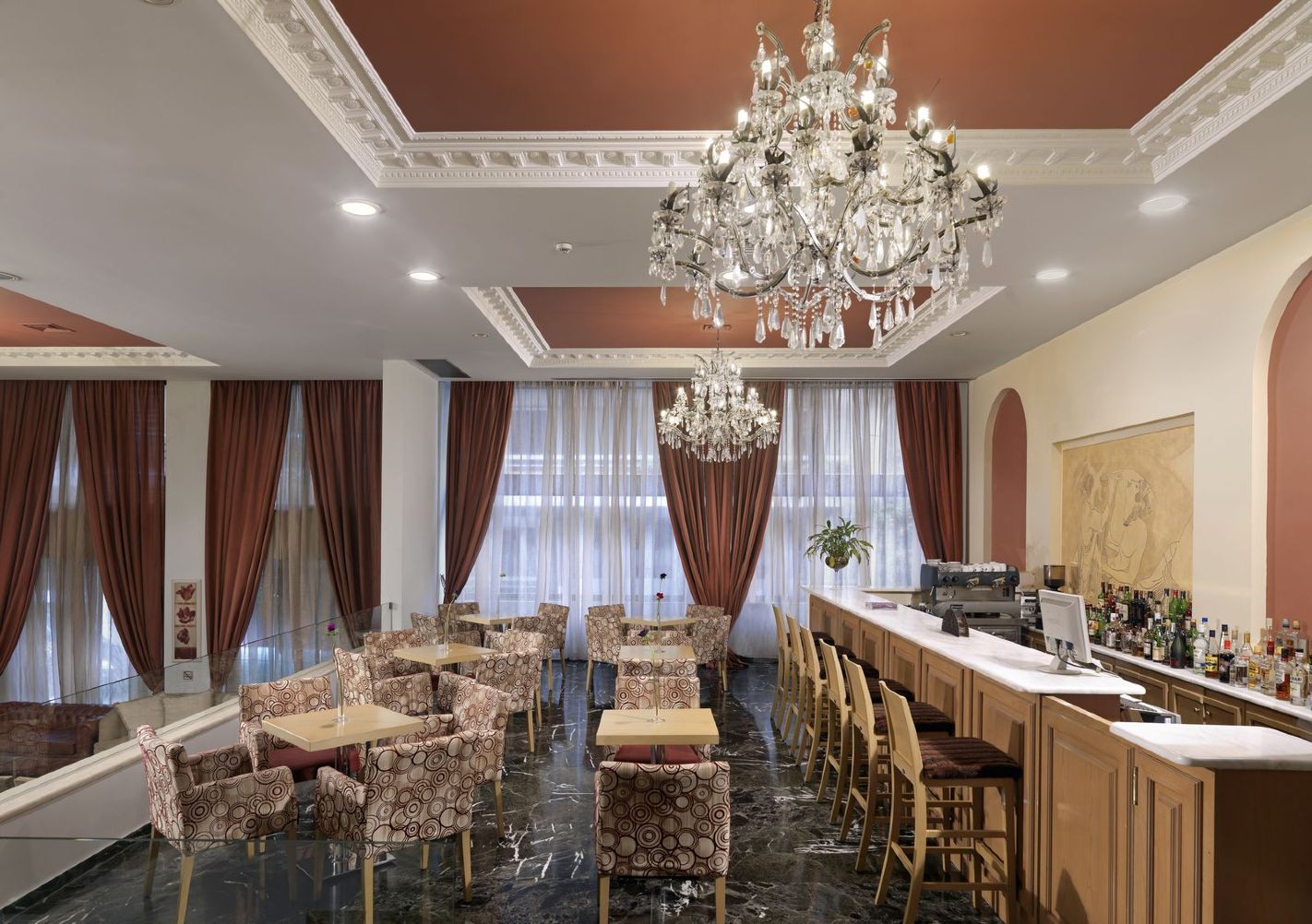 Reception, Acropolis restaurant (Greek cuisine), hotel bar which also serves bar snacks.