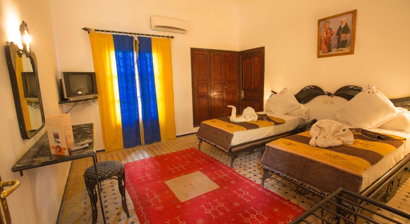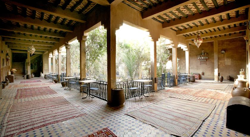 Large patio area with tea room, restaurant serving traditional Moroccan cuisine, library and TV lounge. Large swimming pool with sun terrace, massage, beauty treatments available. There are numerous outdoor terraces and comfortable lounges offering many places to relax.