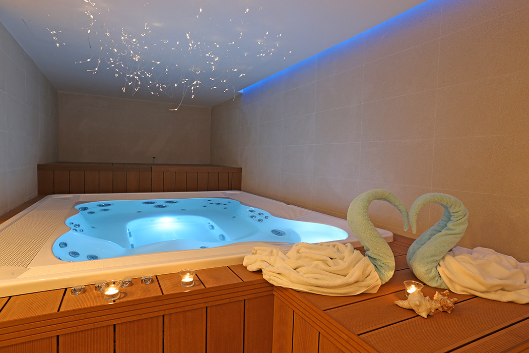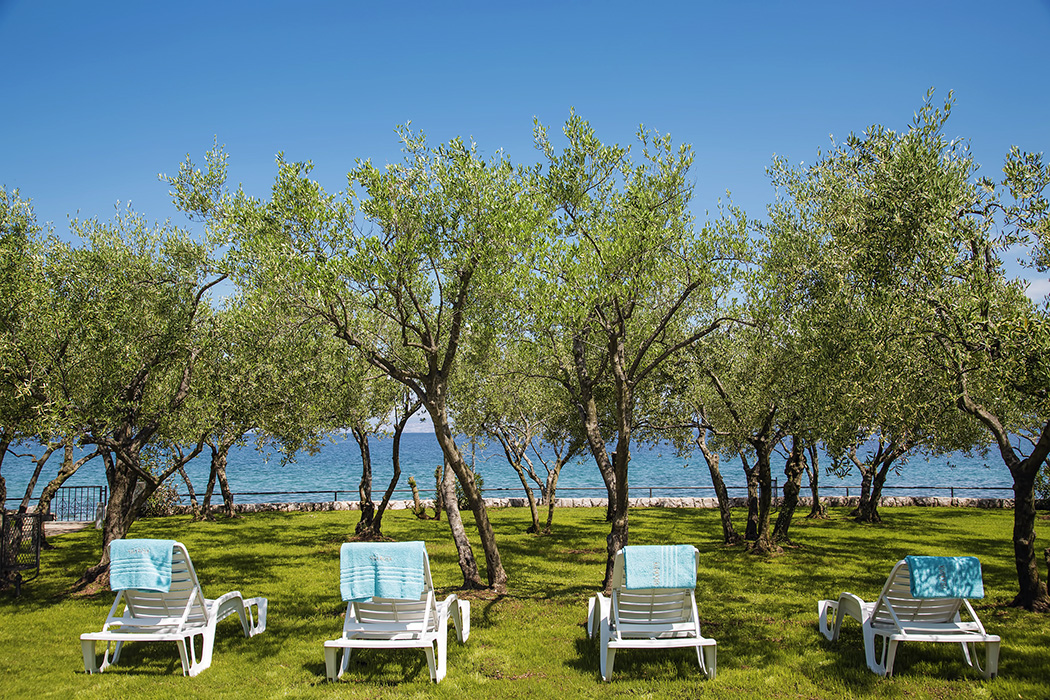 Private sun deck with lounge chairs in the shade of olive trees, Spa & Wellness, heated swimming pool, outdoor Jacuzzi (for relaxation in spring and autumn), excellent a la carte restaurant and beach grill bar serving Mediterranean and local cuisine.