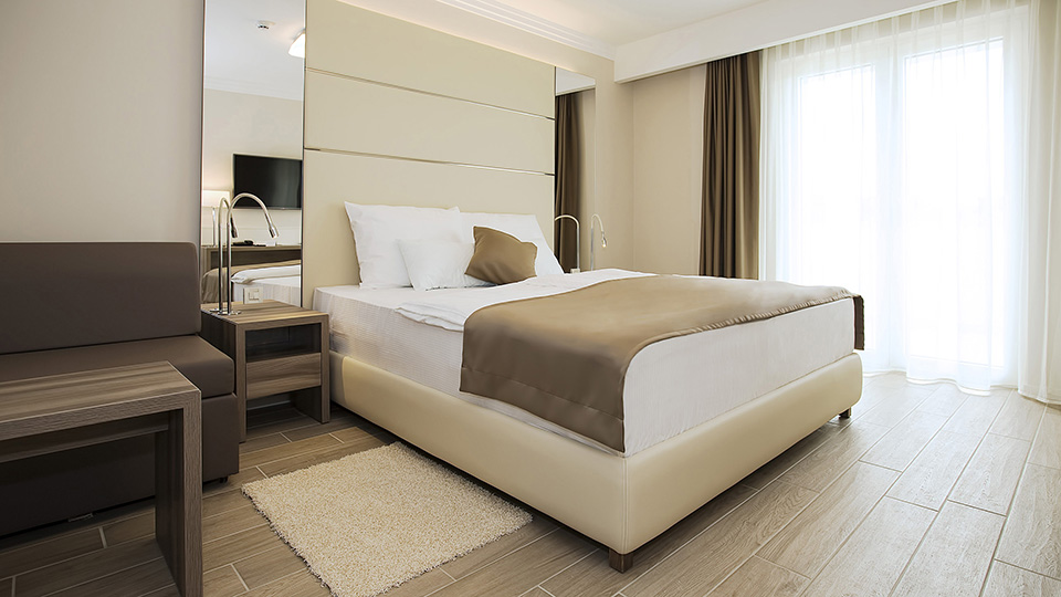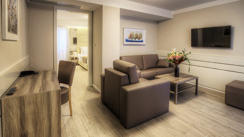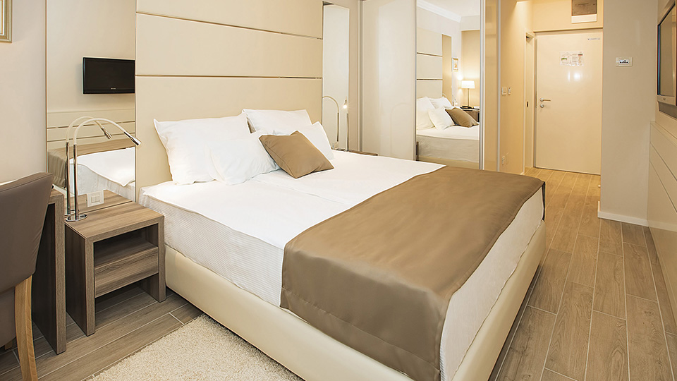 The hotel comprises 20 rooms and suites. The double standard and superior rooms have a balcony and either sea view or land view; the suites, for either two or four persons, have a terrace and sea view and there are also interconnecting rooms available. All rooms have: telephone, mini-bar, heating, air-conditioning, flat screen satellite TV, free Wi-Fi, bathrobe & slippers, beach towels, hotel safe deposit box, en suite bathroom with shower, hair dryer, balcony equipped with a table and chairs.