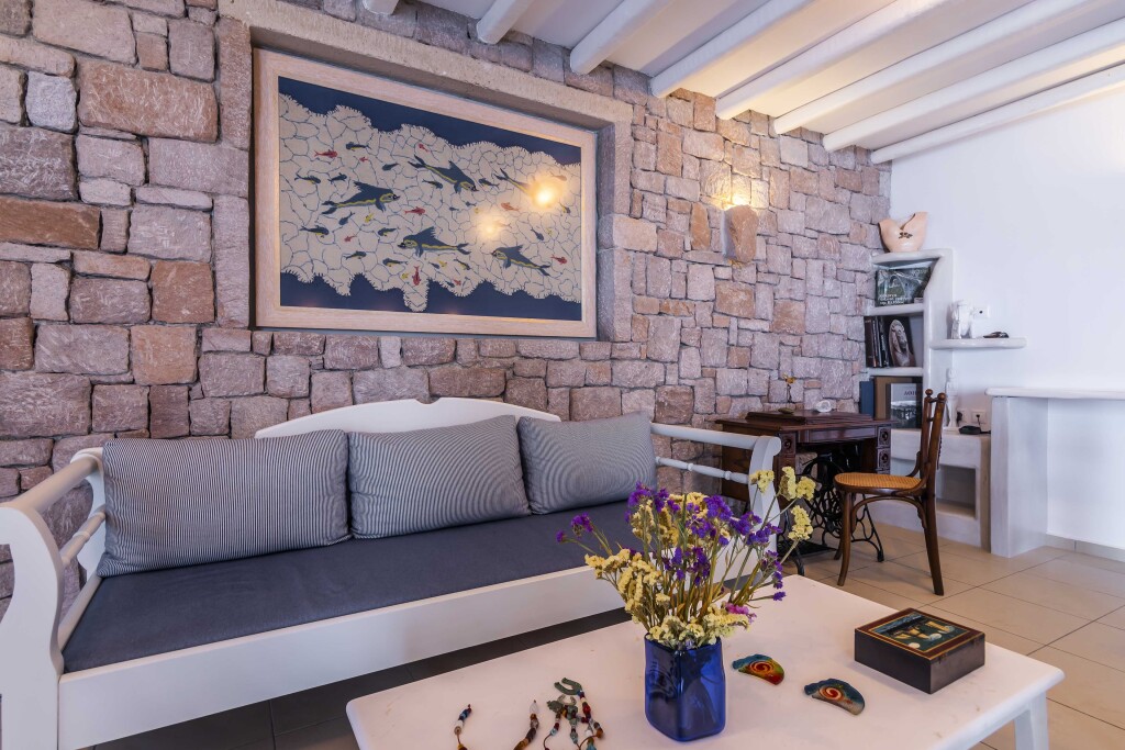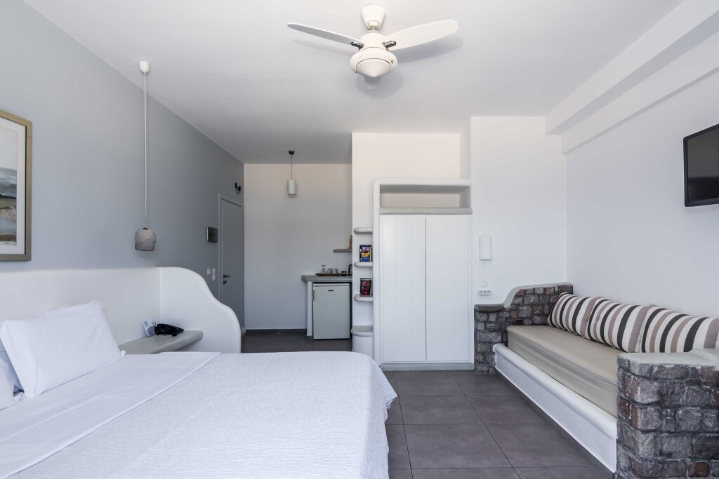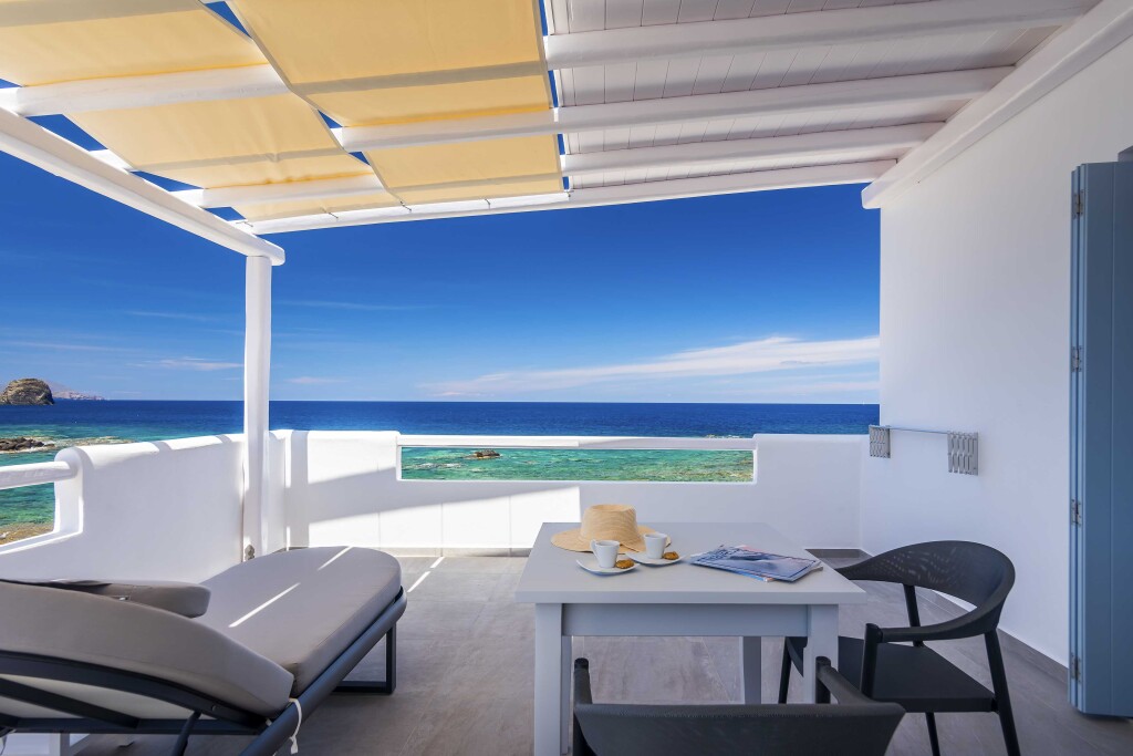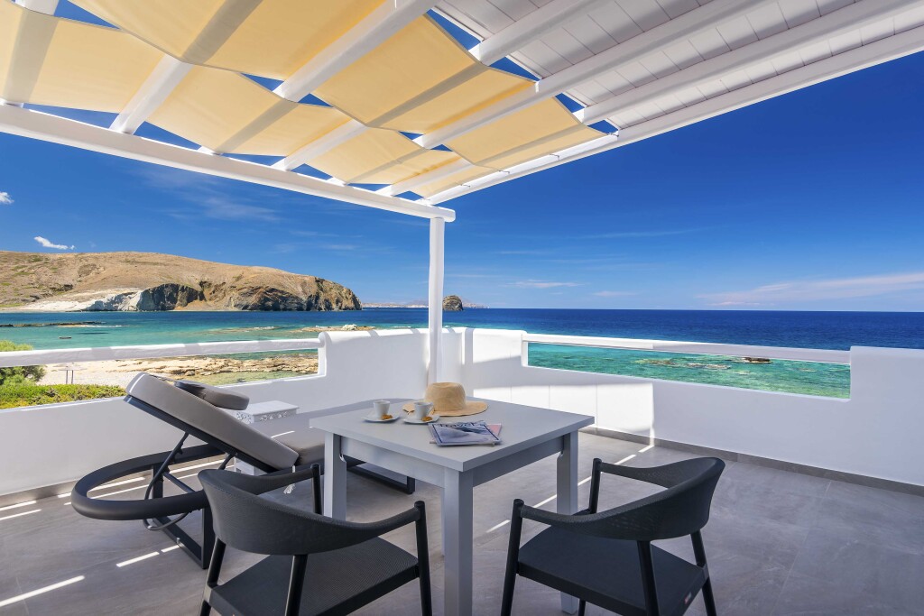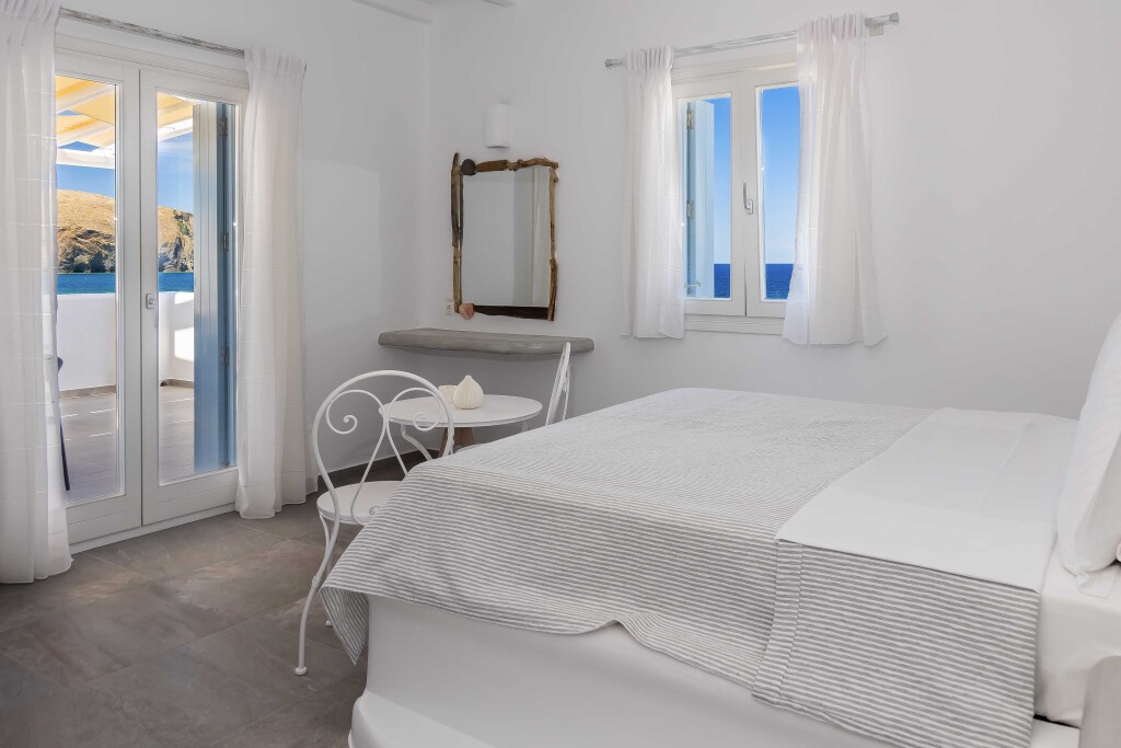 • Honeymoon Suite, on the first floor, has a small lounge and a second balcony with an unrestricted view of Kimolos.