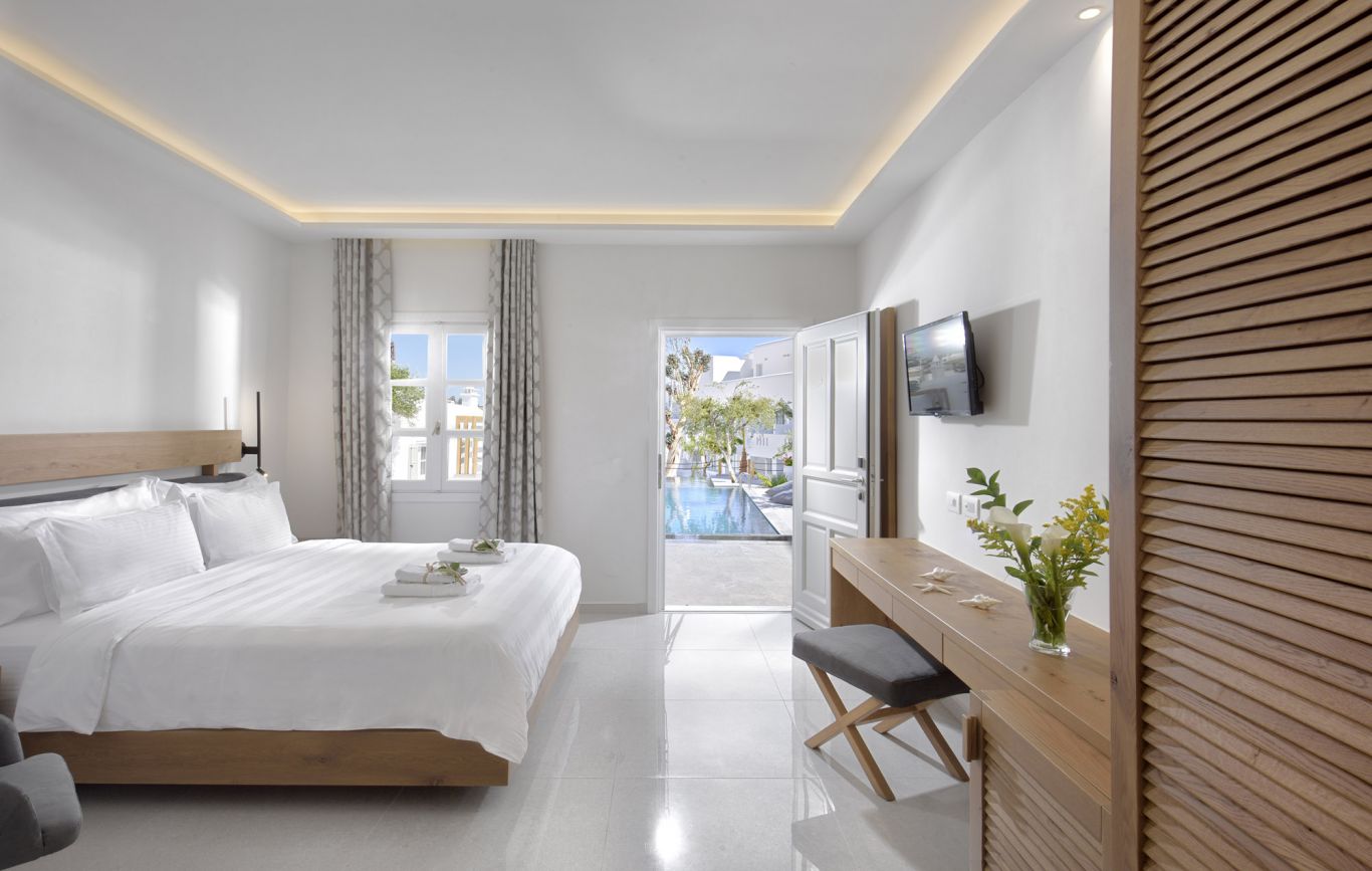 A few steps away from Platis Gialos Beach and only a short bus ride to Mykonos Town lies the beachfront Petinos Hotel.