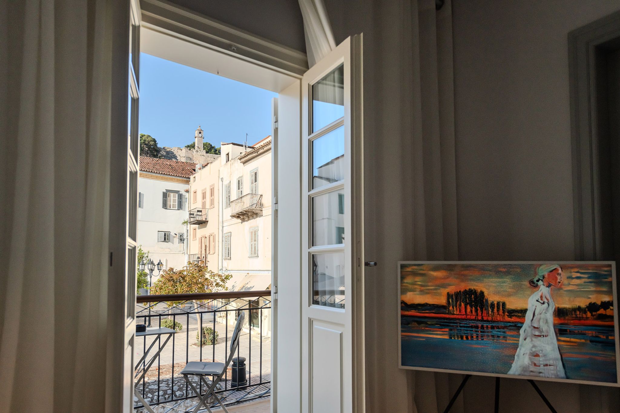 Junior Suite with terrace 25sqm, sleeps 3 people. The private terrace overlooks the Palamidi Castle, the walls of Akronafplia and the historic pedestrian street of Amalias Avenue. It includes a King Size bed & an armchair that converts into a single bed.