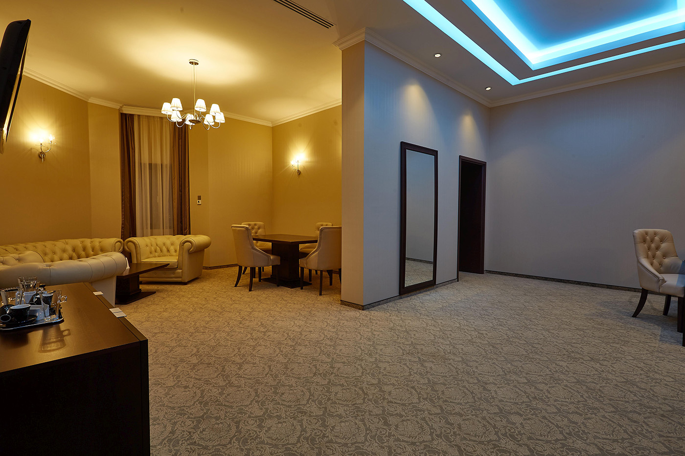 Reception & lift; Classic restaurant on the ground floor and mezzanine "Avantgarde" restaurant (where breakfast is taken) offer a refined menu, varied and fresh, with Romanian and international specialities. For lunch and dinner the classic restaurant menu offers exquisite dishes like smoked duck breast with red cabbage & orange sauce; grilled beefsteak with Pont Neuf potatoes, sauteed mushrooms and beurre maitre d'hotel or the finest panna cotta flavoured with lime and lemon sorbet.