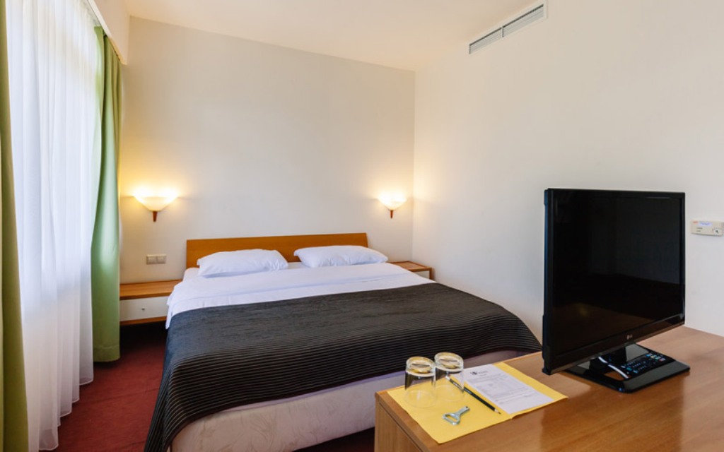 The hotel offers 52 rooms: standard double rooms with park or lake view, superior rooms (maximum 3 persons) with park or lake view (the latter have balcony), Premium double room with park view and Junior Suite with lake view (some have balcony). All rooms are equipped with satellite television, wifi, safety deposit box,direct dial telephone and minibar.