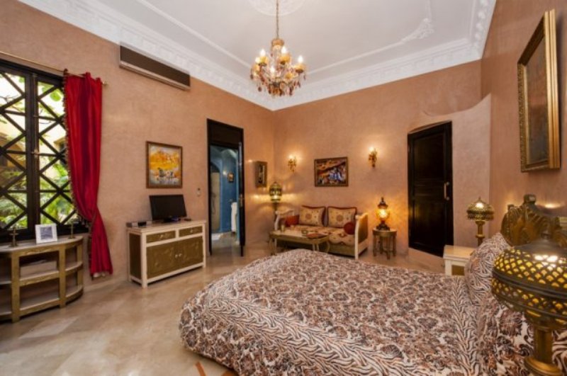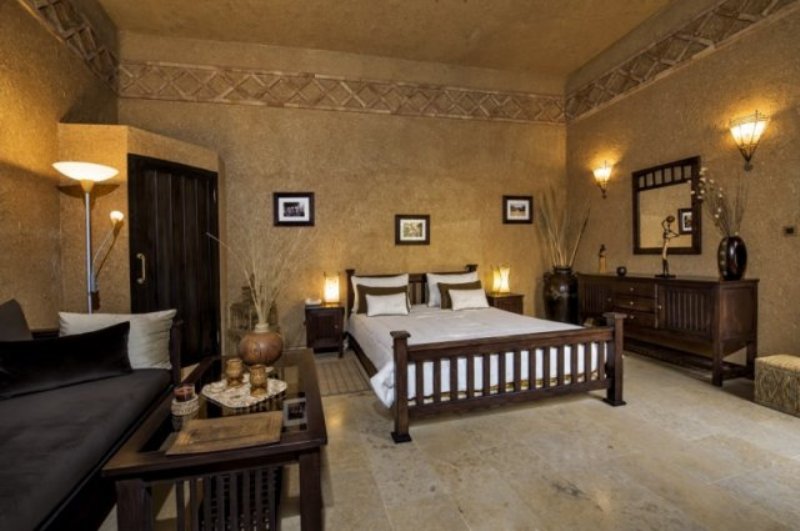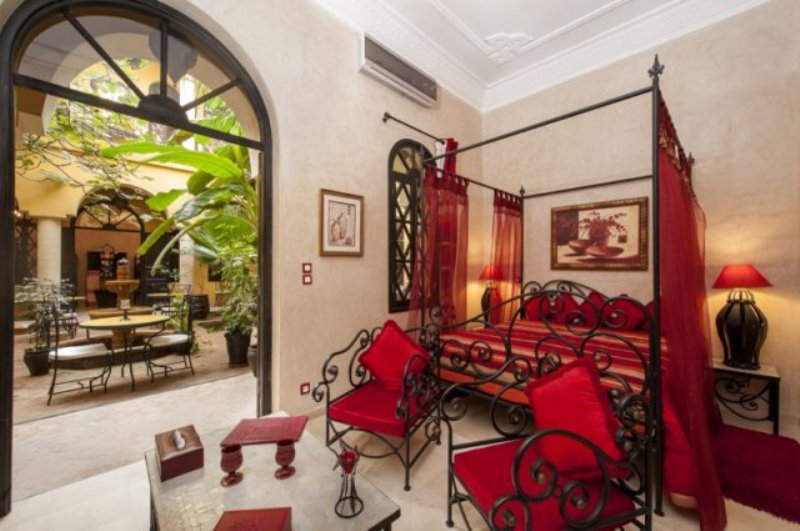Berber Night Suite is the largest suite and is located on the ground floor. It's decorated in tones of ivory and red with sculpted ebony furniture.